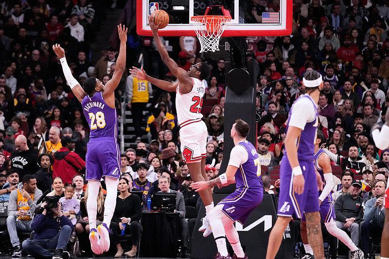 北京时间1月27日,NBA常规赛继续进行,湖人客场挑战公牛。最终,凭借东契奇和詹姆斯的强势发挥,湖人在客场129-118战胜公牛,取得两连胜。比赛中。图源:视觉中国首节比赛,湖人在东契奇和詹姆斯带领下与公牛展开对攻,凭借节末段的一波进攻高潮,湖人35-31领先公牛。 次节回来,湖人詹姆斯突然发力,连续进攻得手,湖人一度将领先优势扩至20分,在收尾阶段公牛打出...